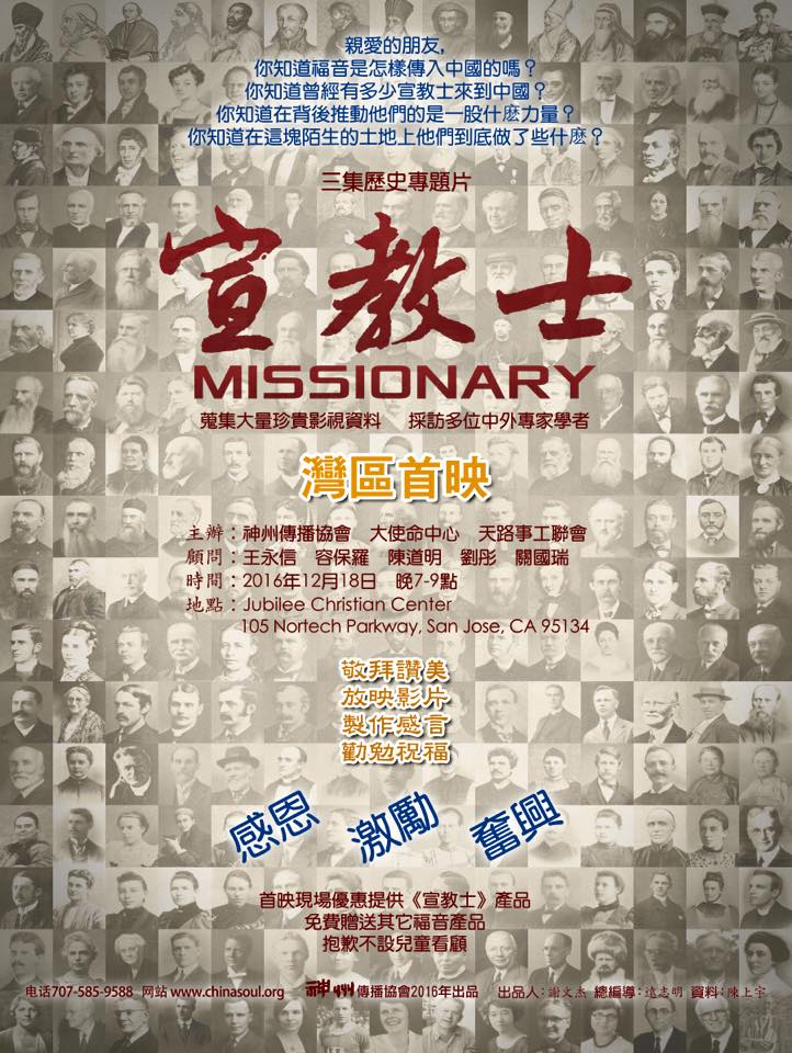 历史纪录片《宣教士》于12月18日在旧金山湾区首映式圆满举行,反应热烈。感谢神!愿神使用这部影片,激励和祝福更多的人。