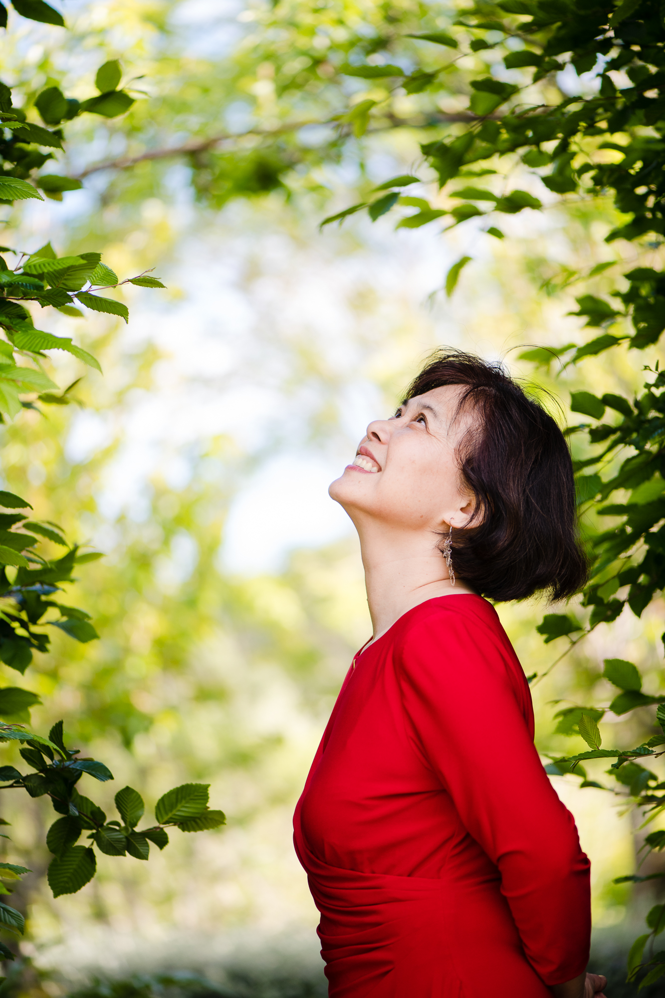 清晨,在鸟鸣声中醒来。睁眼看到窗外,一抹朝霞从山巅洒下,染红了山间的花园。